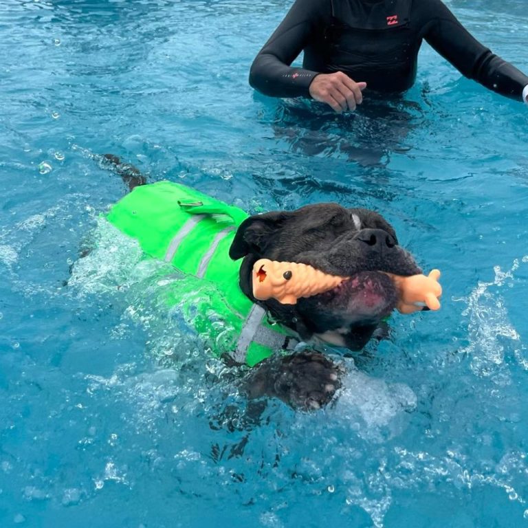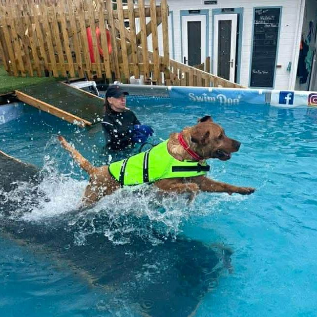 We have a number of swim sessions so please choose the one that best suits your dog. All sessions are attended with us in the pool encouraging your dog, so you don’t have to get wet if you don’t want to.